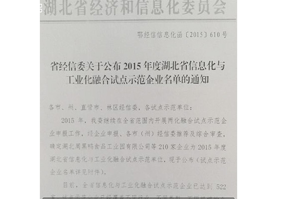 湖北省两化融合试点示范单位