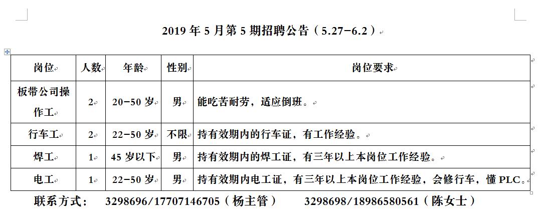 2019年5月第5期招聘公告