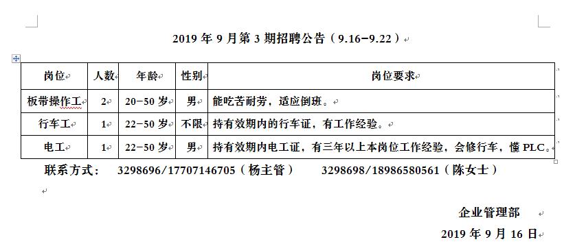 2019年9月第3期招聘公告