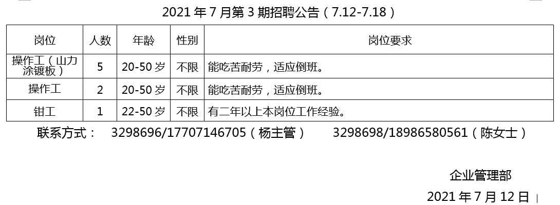 2021年7月第3期招聘公告