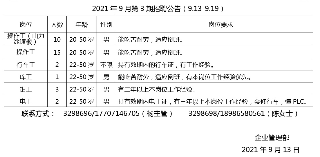 2021年9月第3期招聘公告