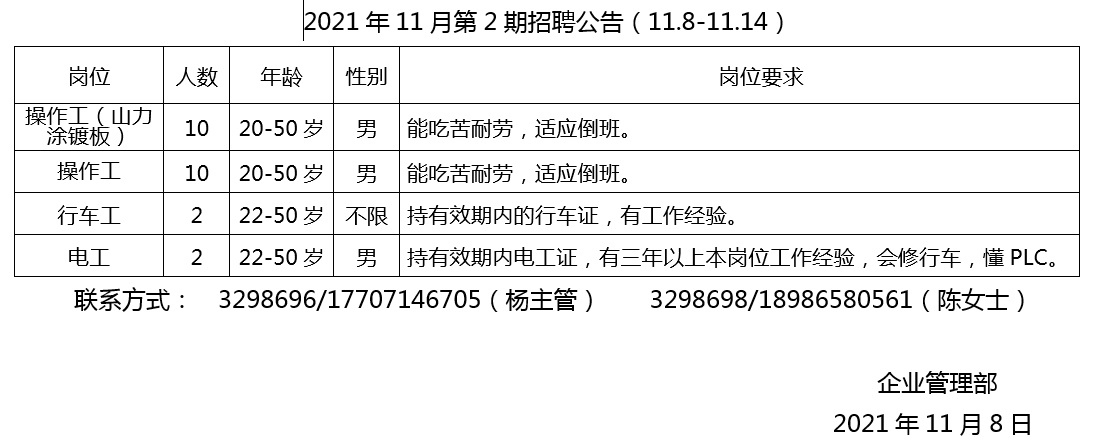 2021年11月第2期招聘公告