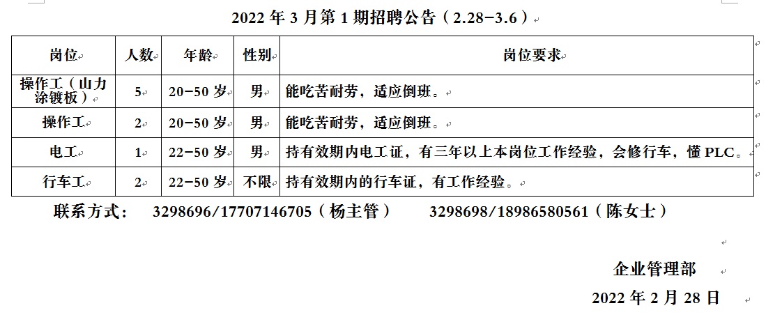 2022年3月第1期招聘公告