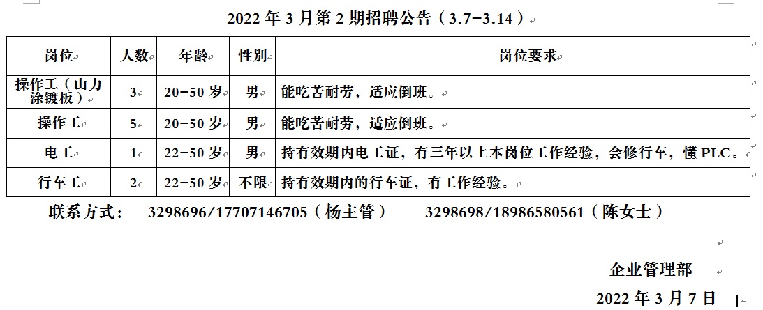 2022年3月第2期招聘公告