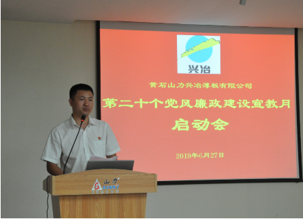 2019年6月27日上午,公司召开第二十个党风廉政建设教育宣传月活动启动会,公司党委书记、副总经理乔文鸿,副总经理李德才、熊伟兵,财务总监陈爱民出席会议;公司全体党员、中层以上干部、机关各部门员工、各单位有对外职能人员等约100人参加启动会。