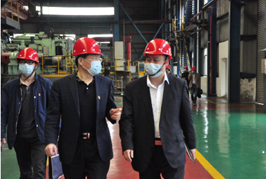 2020年3月25日,黄石市委组织部副部长、黄石人力资源和社会保障局党组书记、局长柯月明在大冶市人力资源和社会保障局党组书记、局长余智彬的陪同下来公司检查复工复产工作。公司党委书记、副总经理乔文鸿陪同检查。