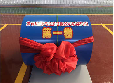 2021年3月24日14时08分,黄石山力兴冶涂镀板有限公司彩涂机组第一卷彩色涂层钢板产品(规格:0.35mm*1000mm*C,海蓝)成功下线,标志着山力兴冶涂镀板彩涂机组投产。