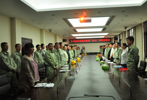 会议在雄壮的国歌声中正式开始。11名预备党员上台面向党旗党徽,高举右手,握紧拳头,跟随李丰华委员一起大声宣读入党誓词,公司全体党员共同鉴证这一神圣时刻。预备党员代表陈迪智同志作表态性发言。