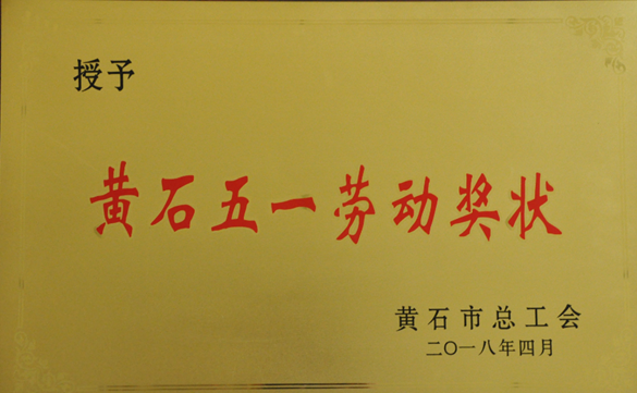 公司荣获2018年“黄石市五一劳动奖状”荣誉称号
