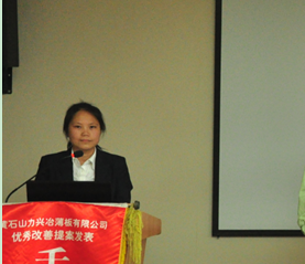 各部门、各车间共14个优秀提案人一一上台发表,最终经过评委打分,板带制造部、冷板连退车间发表的提案并列第一名,热板硅钢车间发表的提案荣获第三名,公司领导分别为获奖提案发表人、第一名获奖单位颁奖。会上,板带制造部推行干事张家军分享精益管理推行经验。