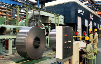 上卷→开卷→切头→焊接→入口活套→纠偏辊和张力辊→测张辊→液压分切剪→轧机→飞剪→卷取→卸卷→包装